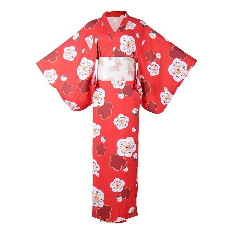 Joel Ding's Store レディース 花魁系 ロング 着物ドレス 舞妓 芸者 鮮やかな桜 和風 浴衣 コスチューム コスプレ 色レッド ワンサイズ (ワンサイズ, 赤)