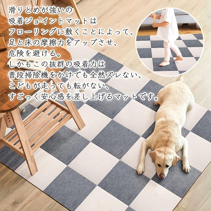 滑りとめが強いの吸着ジョイントマットは役に立つ、フローリングに敷くことで、足と床の摩擦力をアップさせ、危険を避ける。