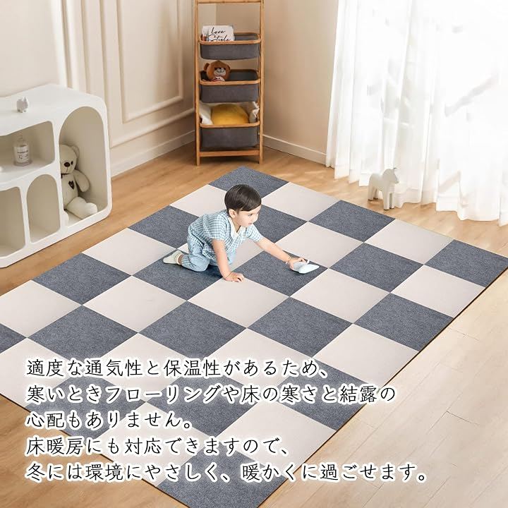 4、「カットオッケー、どこでも使える」使い場所はそれぞれ、ジョイントマットは場所に合わせてカットフリー、好きなサイズでカットして、どこでも使える。