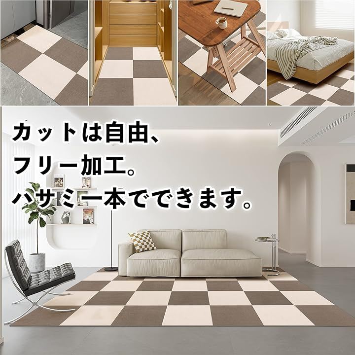 4、「カットオッケー、どこでも使える」使い場所はそれぞれ、ジョイントマットは場所に合わせてカットフリー、好きなサイズでカットして、どこでも使える。