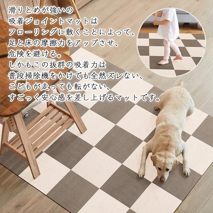 滑りとめが強いの吸着ジョイントマットは役に立つ、フローリングに敷くことで、足と床の摩擦力をアップさせ、危険を避ける。