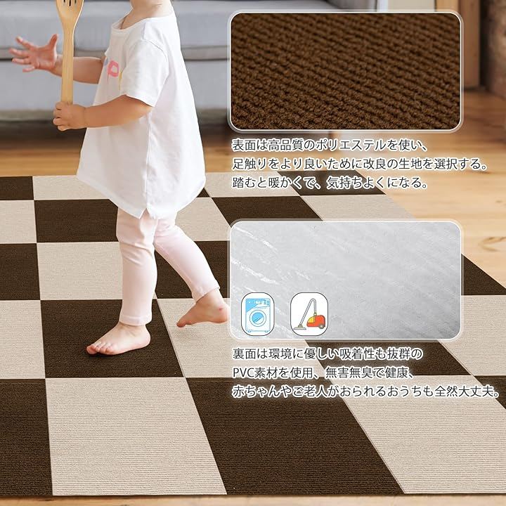 しかもこの抜群の吸着力は普段掃除機をかけでも全然ズレない、こどもが走っても転がない、すごっく安心感を差し上げるマットです。