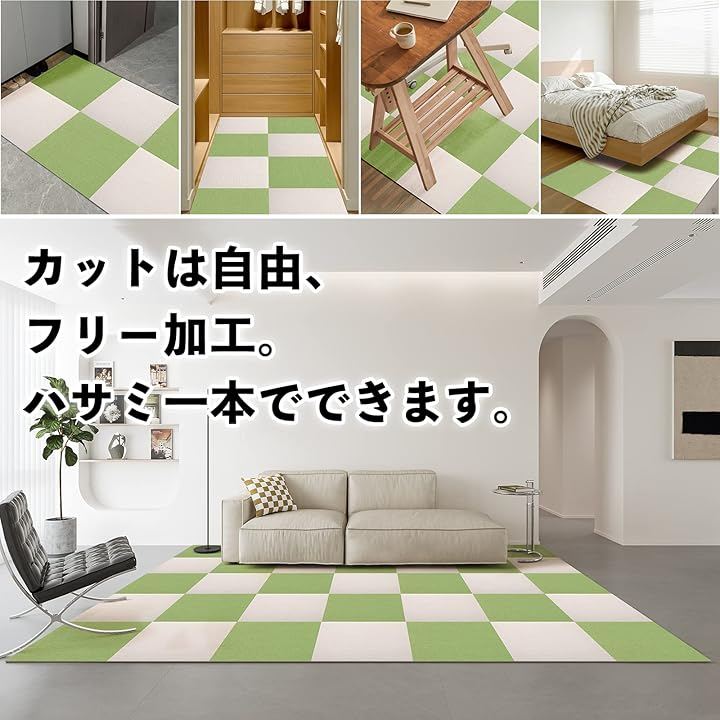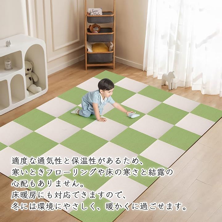 4、「カットオッケー、どこでも使える」使い場所はそれぞれ、ジョイントマットは場所に合わせてカットフリー、好きなサイズでカットして、どこでも使える。
