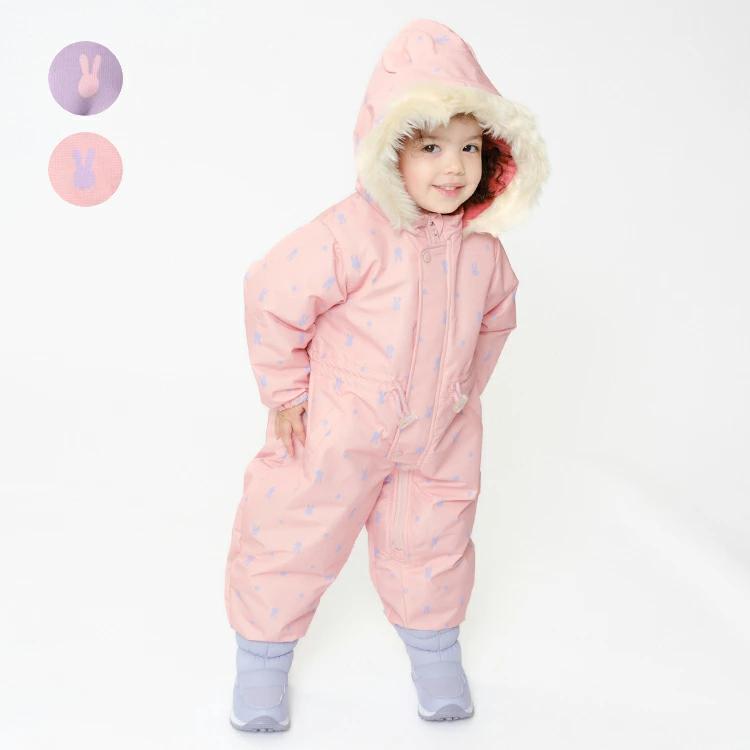 今年もスノーコンビ・ジャンプスーツ・カバーオール・スキーウェア・つなぎを入荷しました♪雪遊びにもおすすめ!!身頃裏地はあったかフリース素材になっています☆足部分は二重構造になっているので、ナイロン部分を中に入れてスノーブーツを履いて、スノーブーツの上から被せると足元から雪が入りにくい!洋服の上から着ることを考え、大き目に作られているので、ジャストサイズをお勧めします。別売りですが、同柄で脚絆、足カバー(F63882)やスノーグローブ、手袋(F63880)もあるので、更なる防寒も可能です!表は耐水圧2000mmの防水加工です!(完全防水ではありません。撥水スプレーとの併用がオススメです。)【アイテム】 カジュアル お洒落 オシャレ かわいい 可愛い 普段着 デイリーウェア お出かけ着 ロングスリーブ 長袖 アウター ブルゾン ジャンパー コート ジップアップ フロントジップ 子ども こども 女児 ガールズ 女の子 キッズ ベビーサイズ トドラーサイズ 幼稚園 保育園 小学校 通園 通学 小学生 2024年秋冬物新作 丸高衣料 ジョリージュリー スキー スノーボード そり遊び うさぎ ウサギ 動物 アニマル ラベンダー パープル 薄紫色 ピンク