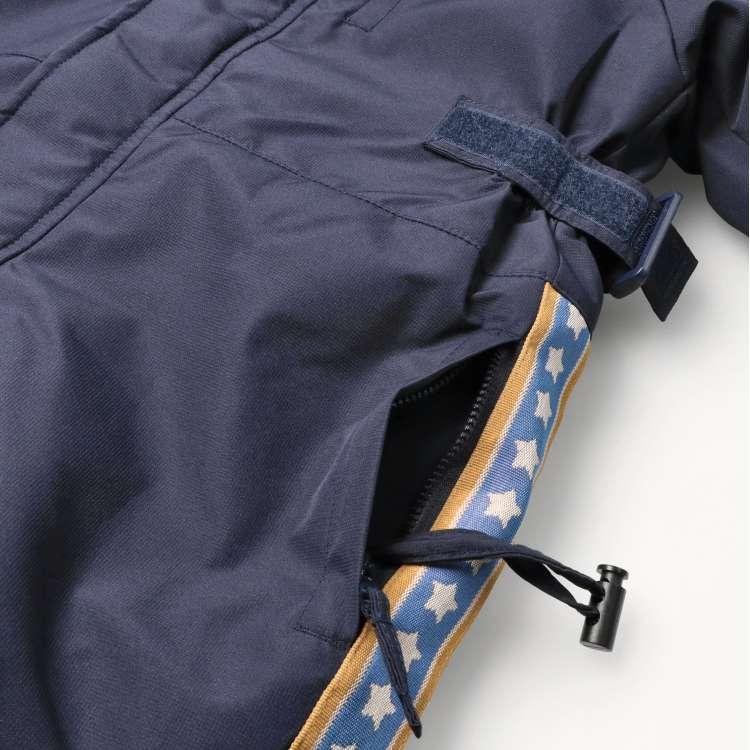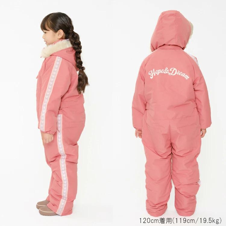 スノーコンビ・ジャンプスーツ・スキーウェアタイプのつなぎ!雪遊びやお外遊びにも!!足部分は二重構造になっているので、ナイロン部分を中に入れてスノーブーツを履いて、スノーブーツの上から被せると足元から雪が入りにくい!ポケットの中のひも、脇部分のひもを調節する事で、手足部分の長さ調節も可能です。お洋服の上から着ることを考えて作られており、大き目の作りなので、ジャストサイズをオススメします。通園、通学の際にもぴったり☆フードはボタンで取り外し可能です!表は耐水圧2000mmの防水加工です!(完全防水ではありません。撥水スプレーとの併用がオススメです。)【アイテム】 カジュアル お洒落 オシャレ かっこいい かわいい 可愛い 普段着 デイリーウェア お出かけ着 ロングスリーブ 長袖 アウター ブルゾン ジャンパー コート ジップアップ フロントジップ 子ども こども 男児 男の子 ボーイズ キッズ ベビーサイズ トドラーサイズ 幼稚園 保育園 小学校 通園 通学 小学生 2024年秋冬物新作 丸高衣料 切替 雪遊び スキー スノーボード ソリ遊び ジョリージュリー ピンク ネイビー 紺色 ロゴ スター ハート