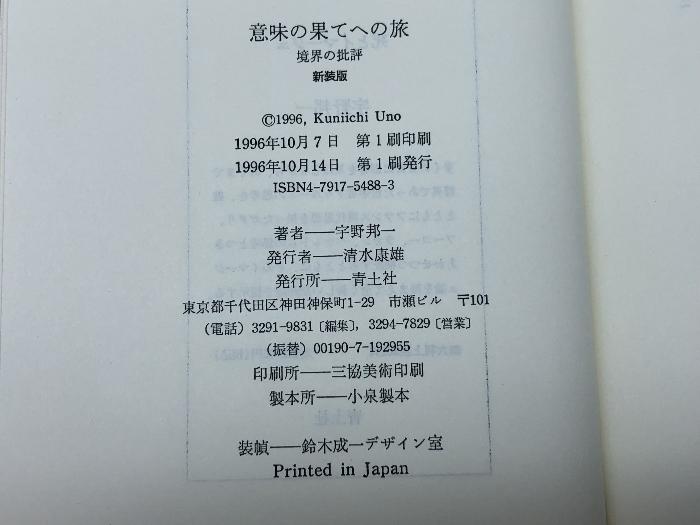 商品名:意味の果てへの旅 新装版: 境界の批評 青土社 宇野 邦一