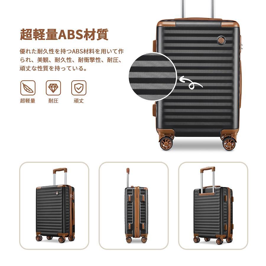 【サイズ・容量】サイズが55*35*20cm、容量は35L、機内持ち込みできます。航空会社により規定が異なりますので、詳細はご利用の航空会社へお問合せ下さい。スーツケースが軽いで、どこにも持ち運びやすい、1泊2日程度の国内旅行や小旅行の際の魅せるお洒落アイテムとしてもご利用いただけます。持ち歩くことができ、短距離ビジネスマンや個人旅行に最高人気、持ち上げ楽々。 【超軽量・頑丈なABSボディ】軽くて弾力性があり、割れにくいABS樹脂が汚れにくく、耐衝撃性・耐熱性などに優れた。キズが目立ちにくいシボ加工、きめ細やかな凸凹が、上品にカーボン模様を浮かび上がらせます。横縞デザインにより、シンプルかつファッションです。超軽量で、女性でも楽々に持ち出かける人気なキャリーケースです。角部に硬質コーナープロテクトを追加、衝撃を効率的に吸収でき、より長くご利用いただけます。 【360°回転キャスター・三段調節キャリバー】ダブルキャスターが搭載し、荷重が分散されるため耐久性にもすぐれて、スムーズな滑りを実現しながら、360度の自由回転もできます。旅先での移動をよりリラックスで快適になります。キャスター部に特殊な材質を採用しアスファルト上でも回転摩擦音を低減しました。三段調節キャリバーがご自分の身長に合わせて、高さをスムーズに調整できます。誰にも十分にピッタリです。柔らかな素材を採用されたハンドルで長い時間の手提げでも手は疲れません。 【合理的な仕切りデザイン】キャリーバッグが密閉されたU字型コンパートメントのおかげで、荷物を入れるとばらばらにならない、乾湿分離、交差汚染予防。メッシュ状のポケットにより、収納しにくい小物でもは一目でわかります。後シェルには荷物を押さえるX字バンドを装備して、荷物崩れを防着ます。出力抜群で、たくさんの小物を入れることはできます。 【ダイヤルロック】簡単な操作のダイヤル暗証番号式ロックなので、鍵が不要で、番号はお好きな数字に変更設定ができ、海外旅行や出張も安心です。初期設定は「0-0-0」です。変更された暗証番号を覚えてください。※画像と実物のカラーにつきまして、全品スタジオ撮影素材を使用しておりますが、お客様のデバイスやデバイスの設定によって見え方が変わる場合がありイメージと若干異なる場合もございます。ご了承ください。