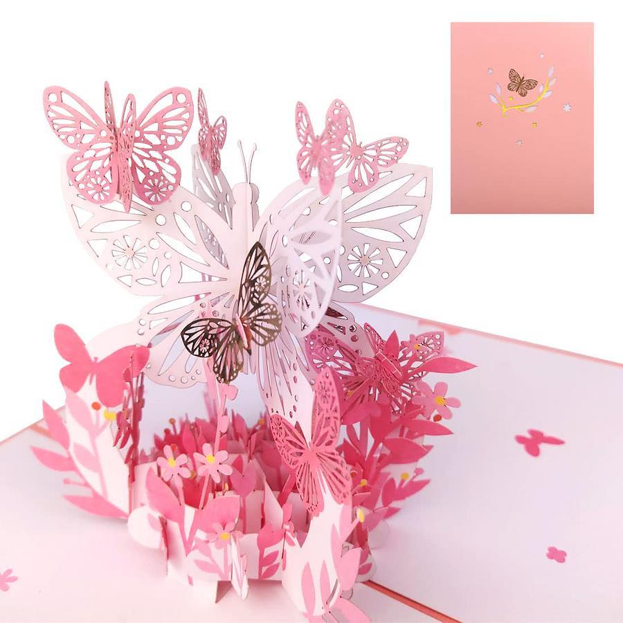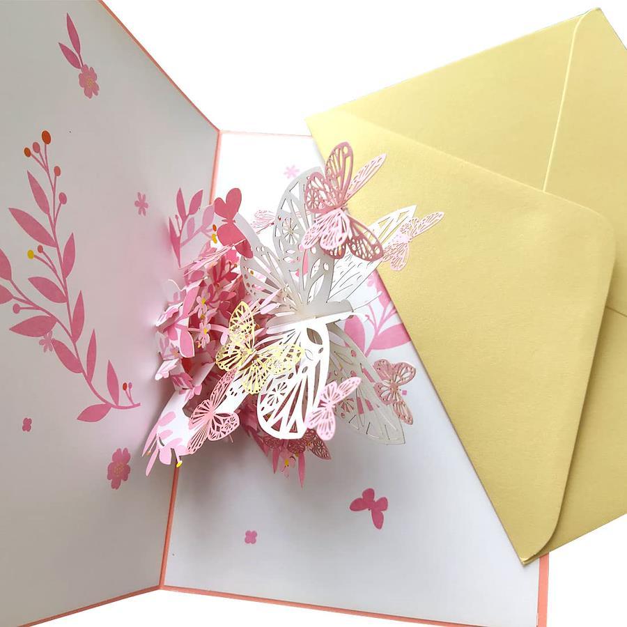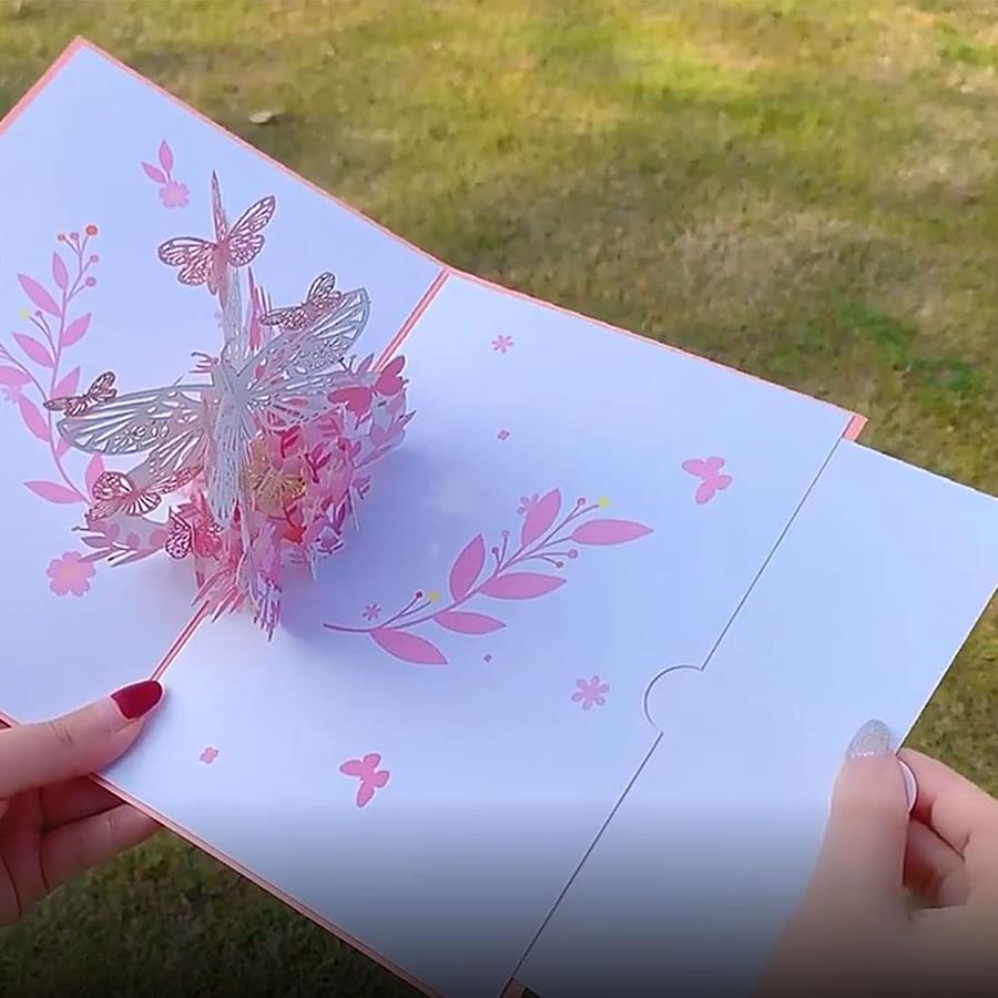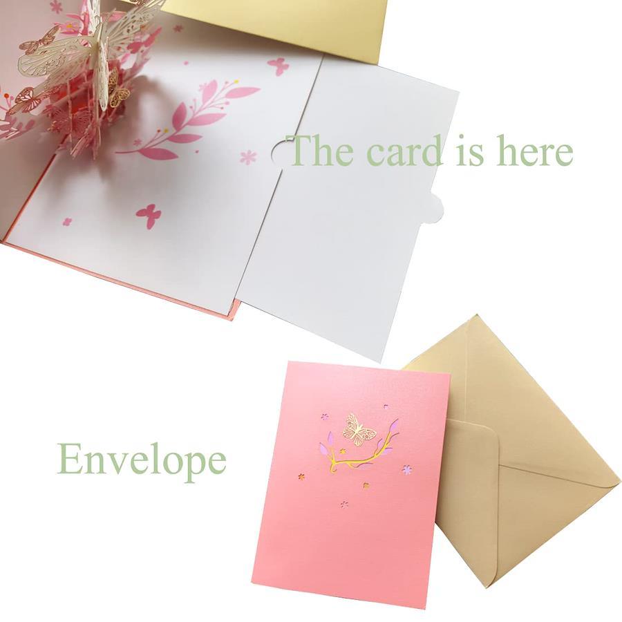 通常1-5営業日で発送【新品未開封品】3D 蝶々ポップアップカード 立体 グリーティングカード 様々なシーンために祝福カード 母の日 誕生日カード おめでとう 記念日 フラワーカード メッセージカードと封筒付き(パープル)(ピンク)