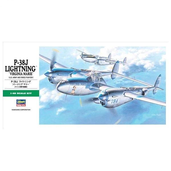 ハセガワ JT1 1/48 P-38J ライトニング バージニアマリー プラモデル P-38ライトニングは、双胴双発という特異なスタイルの機体で、第二次大戦中のアメリカ戦闘機の中でも異色な存在でした。※ホビーショー2022 春 登場アイテム1/48スケール※組み立て・塗装の必要なプラモデルです。完成品ではございませんのでご注意ください。