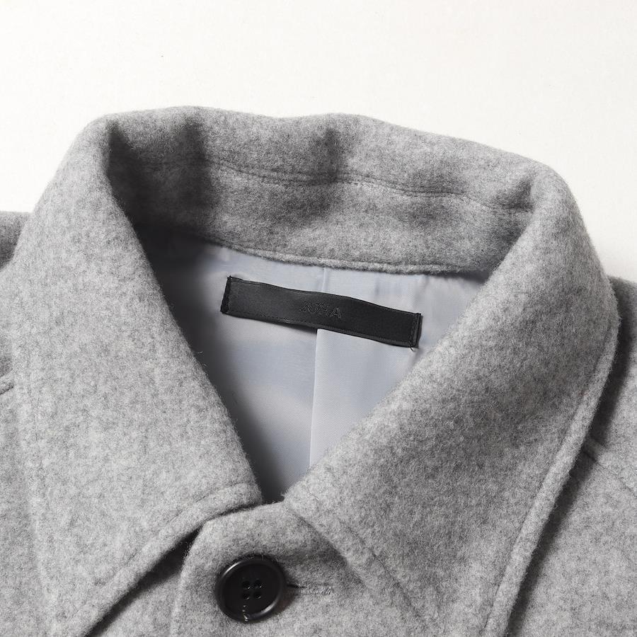 メランジ調のウールナイロン混紡モッサ地を使用し、フライフロント(比翼仕立て)のミニマルなデザインで仕上げられた"FLYFRONT RAGLAN SHIRT JACKET"です。
