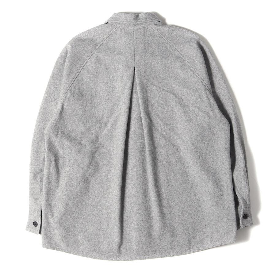 商品説明メランジ調のウールナイロン混紡モッサ地を使用し、フライフロント(比翼仕立て)のミニマルなデザインで仕上げられた"FLYFRONT RAGLAN SHIRT JACKET"です。