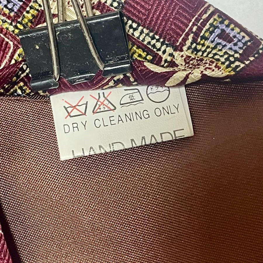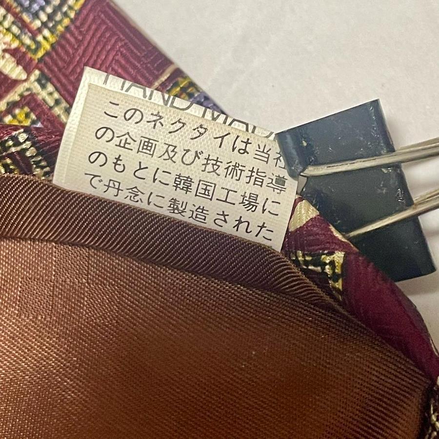☆こちらの商品はUSED品ですので新品や未使用品をお求めの方はご遠慮ください。シルク100%のジャカード生地を使用し、ワインレッドとゴールドの花柄デザインが特徴のネクタイ。
