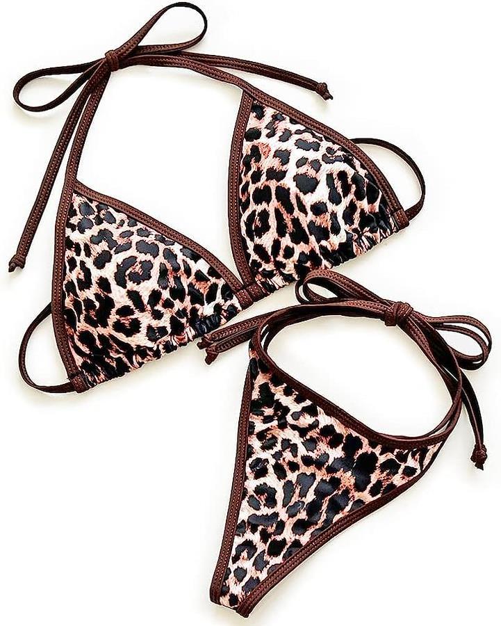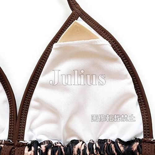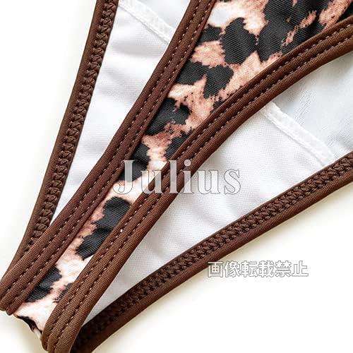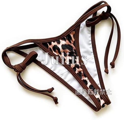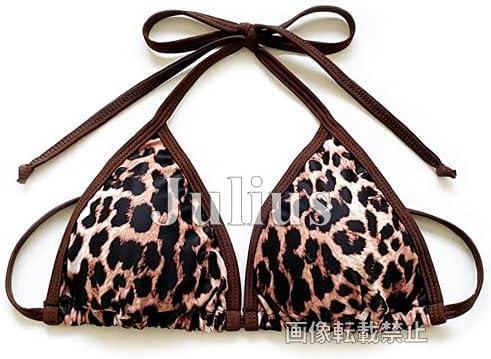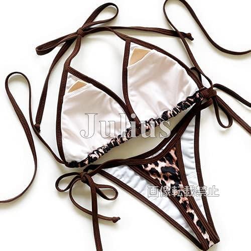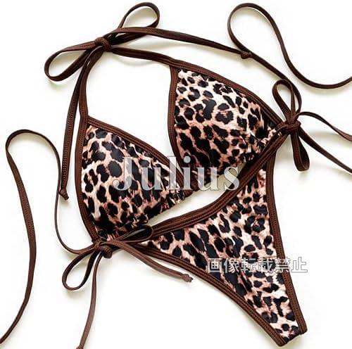 Julius Women's Leopard Print T-Back Triangle Bikini Set, Polyester, Animal Print, Stretch