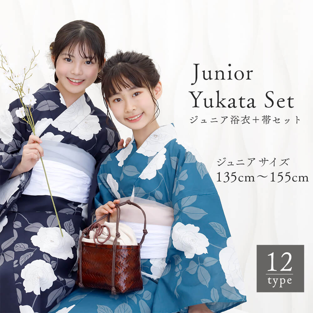 「着せやすい・動きやすい・かわいい」が全部そろった!はじめての浴衣でも安心♪着付けいらずの二部式ジュニア浴衣セット。135cm~155cm対応で、小柄な大人にもぴったり!夏祭りや花火大会に大活躍の1着です。