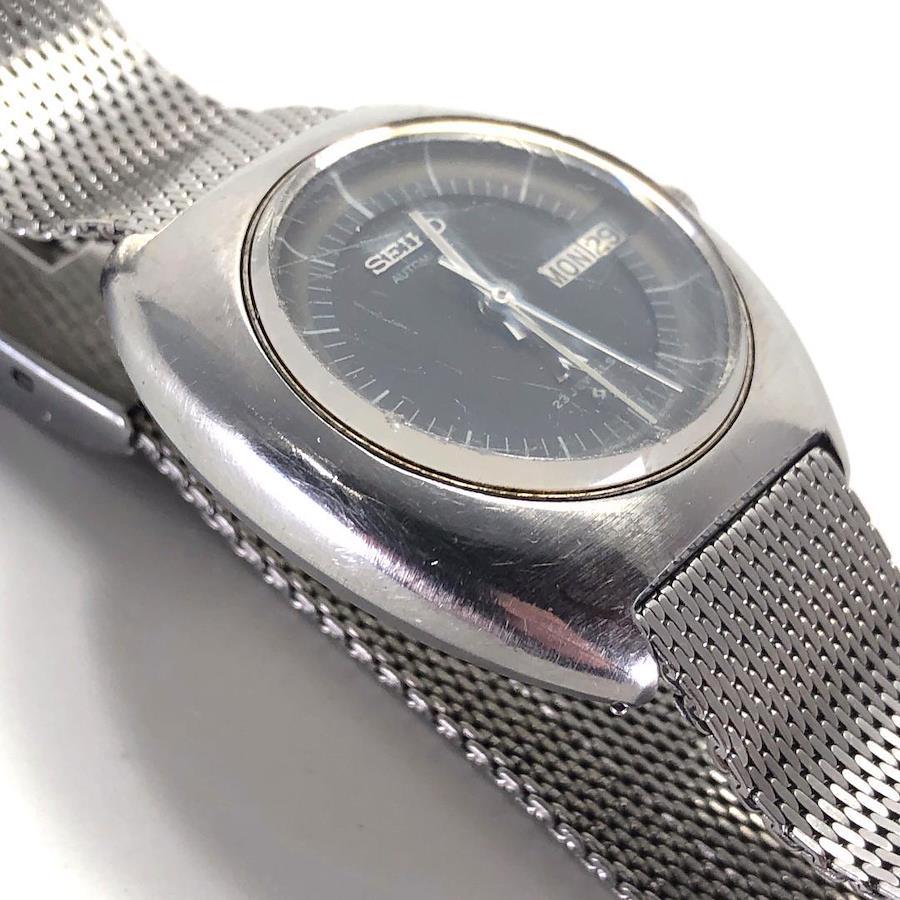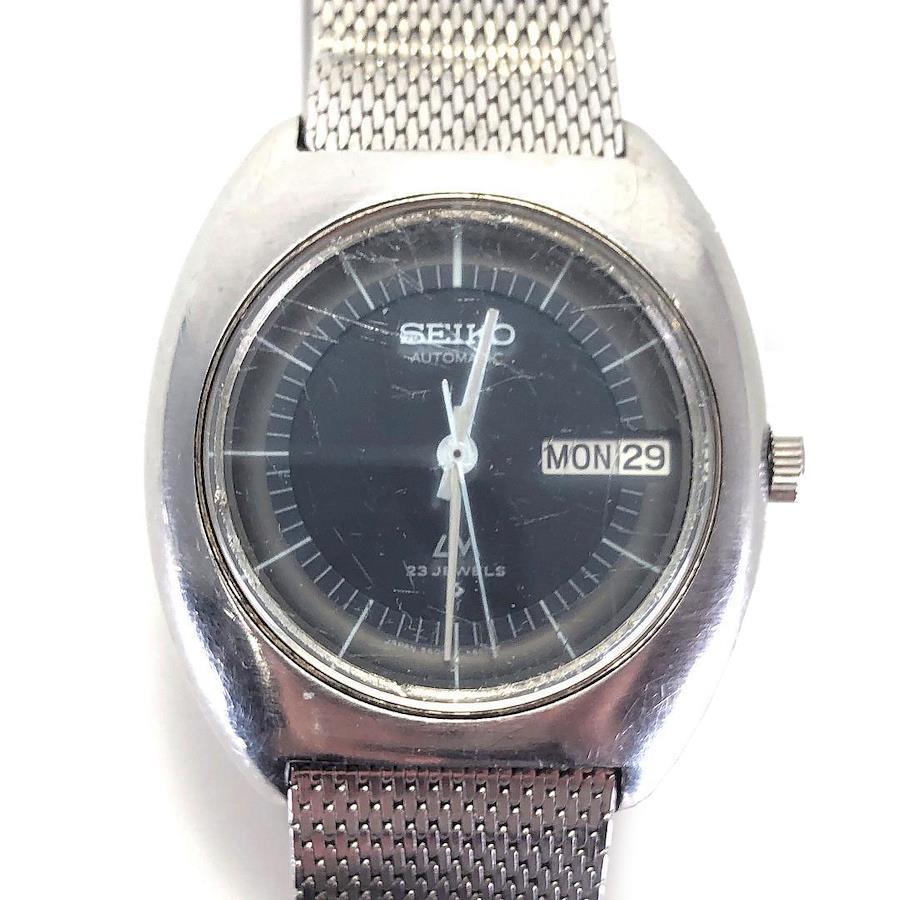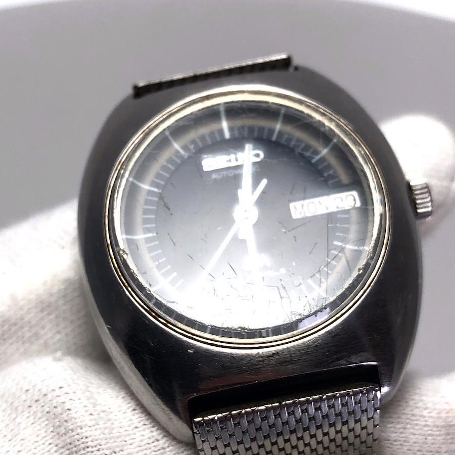 【状態】※ューズ一段目で日付・曜日の調整が行えません。また時刻の進みが早い状態のため正常な状態ではございません。そのためジャンク品としての出品です。全体的にキズ・ヨゴレ、風防の曇りが見られます。ベルト非純正、クラスプ純正となります。画像にて商品状態のご確認をお願い致します。