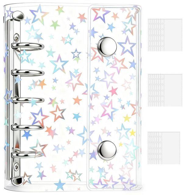 カラー:星柄◆商品名:JUNXINHENGFAシール帳透明m5リフィル20枚付き女の子クリアバインダーはがせるシール収納推し活グッズDIY活用防水おしゃれ(星柄)
