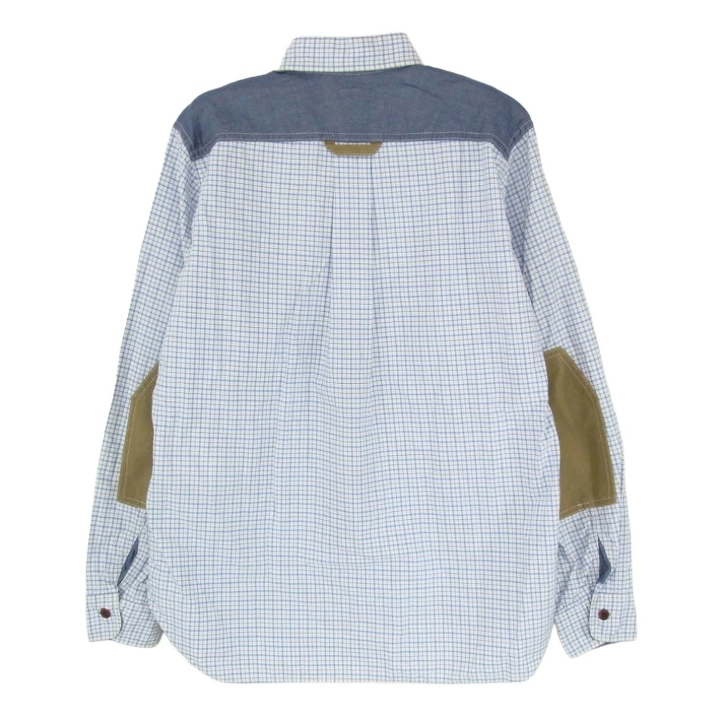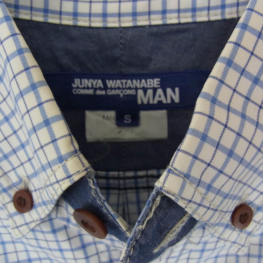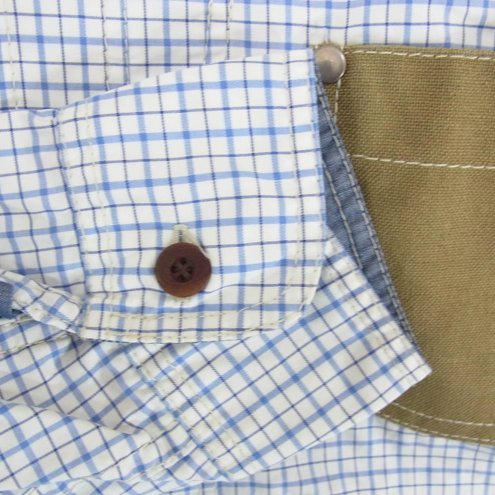 JUNYA WATANABE COMME des GARÇONS MAN AD2013 WM-B034 Mixed-Material Patchwork Button-Down Checkered Long Sleeve Shirt, Blue, Size Small, Men's [Used]