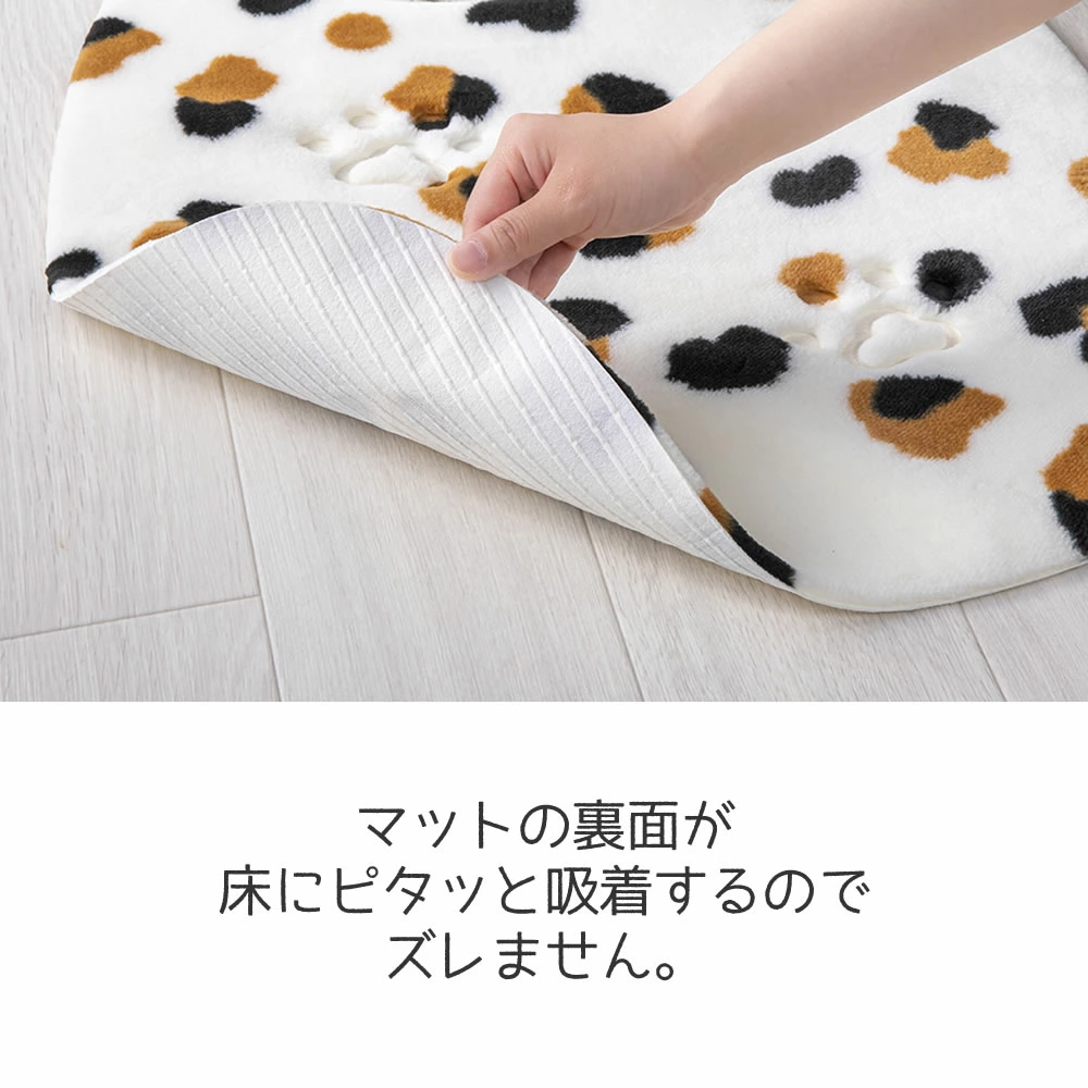 【商品情報】・ふんわり肌触りのよい生地を使用しています。・マットの裏面が床にピタッと吸着するのでズレません。・カテキン入りでアンモニア消臭効果があります。・掃除機をかけても吸い上がらず、楽にお掃除できます。・洗濯機で丸洗いできます。
