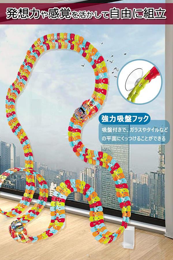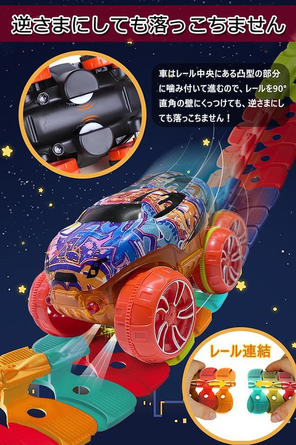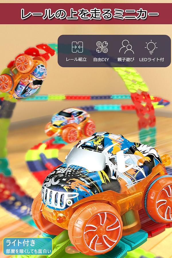【レールの上を走る車おもちゃ】車はレールの上を走ることができ、レールは曲げたり、スナップしたりして、さまざまな形に変形することができます。屋内はもちろん、屋外スペースをDIYのトラックコースに変え、そびえ立つトラックや360°ループを構築して車を走らせて遊べます。【知育玩具】お子様は遊びの中でコミュニケーション能力や思考能力、空間認知能力などを育むことができます。ぜひ親御様もご一緒に遊んであげてください♪お子さまだけでなく、大人も夢中になってしまうエキサイティングなおもちゃ。想像力、思考力、発想力を育み、また指先を使うおもちゃはプレゼントにも最適です【様々なカスタム方法】車はスイッチをON/OFFにすることで自動で走行したり手動で走行させたりすることができます。専用の車はレール中央にある凸型の部分に噛み付いて進むのでレールを90度直角の壁にくっつけても、逆さまにしても落っこちません!また、車のカバーが2種類付属しているのでお好みのカラーに変更可能です♪【プレゼントとして最適】お誕生日、初節句、クリスマス、入園のお祝いなど、ご両親からお子様へのプレゼントとして最適!ご友人やお知り合いなど大切な方へのお祝い事のプレゼントとしても大変喜ばれますよ♪【壊れにくい素材】ABS樹脂素材で、衝撃に強く壊れにくい!ミニカーを自動で動かすには単4電池が3本必要です。(この商品には付属しておりません。)【免責事項】メーカーによる商品リニューアルに伴いパッケージ(内容量も含む)変更が行われた場合、新パッケージでお届け致します事ご了承願います。