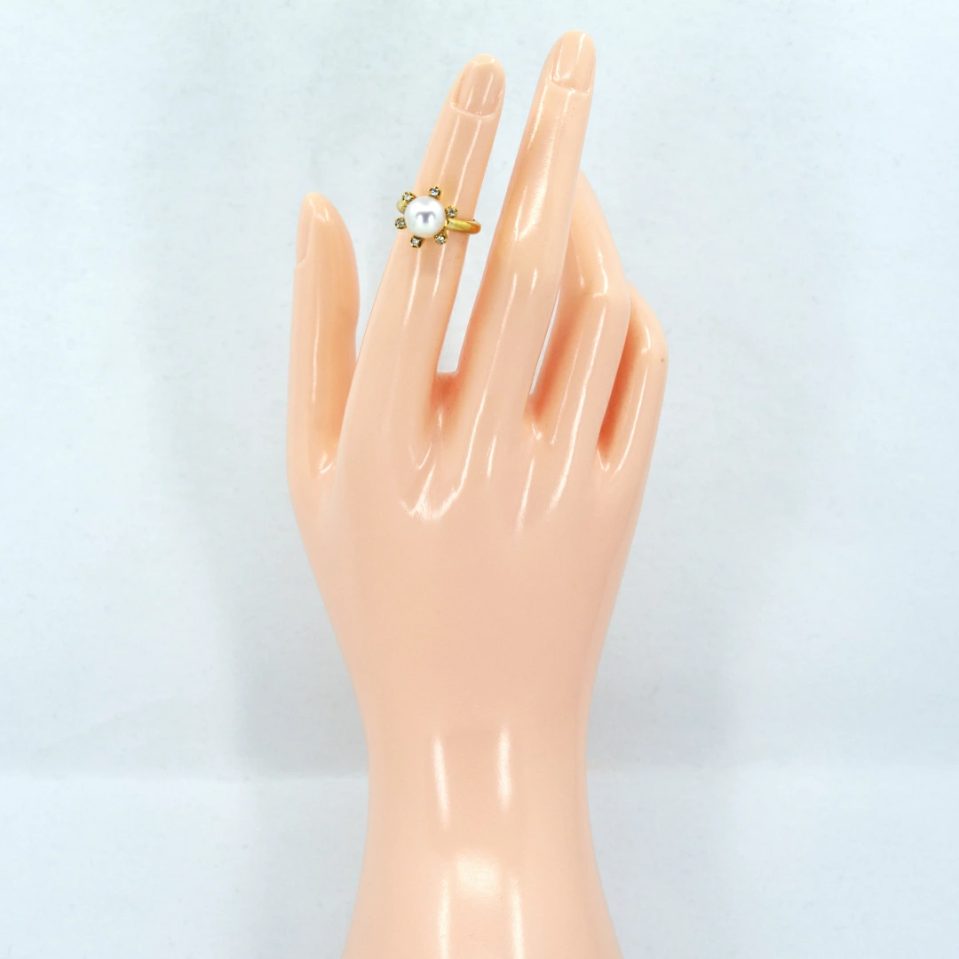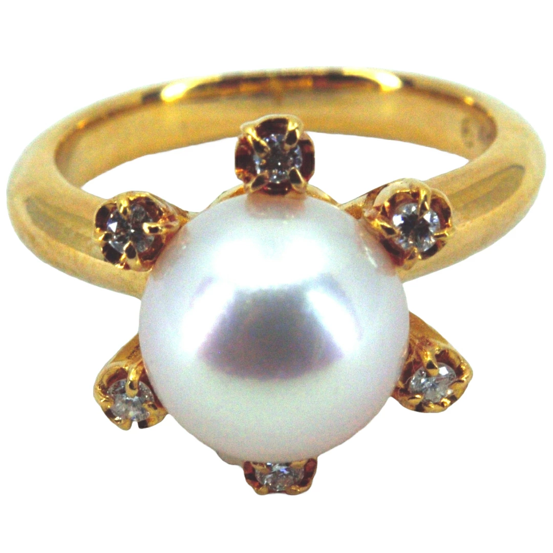 K18 Diamond and Pearl Ring, Gold/White/Silver, K18 Diamond and Pearl, Size 6, Women's, Jewelry/Gemstones/Precious Metals/Ring/Finger Ring [Pre-owned]