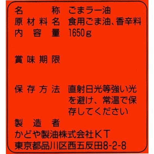内容量:1650g原材料:食用ごま油、香辛料商品サイズ(高さx奥行x幅):306mmx110mmx110mm【重要】メーカーによる商品リニューアルに伴いパッケージ(内容量も含む)変更が行われた場合、新パッケージでお届け致します事ご了承願います。