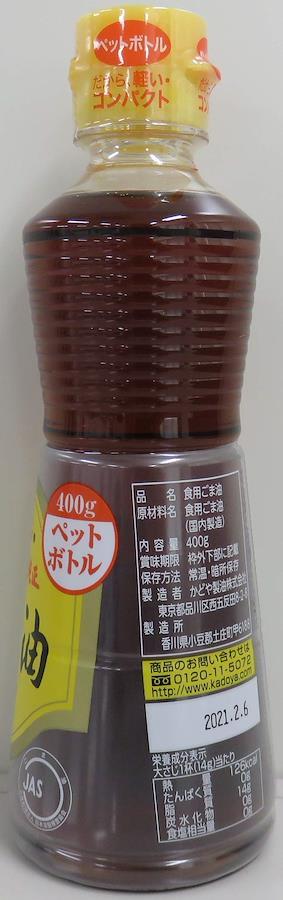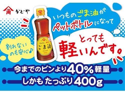 内容量:400gカロリー:126kcai/大さじ1杯(14g)原材料:食用ごま油商品サイズ(高さx奥行x幅):208mmx72mmx72mmブラント名: かどや【重要】メーカーによる商品リニューアルに伴いパッケージ(内容量も含む)変更が行われた場合、新パッケージでお届け致します事ご了承願います。