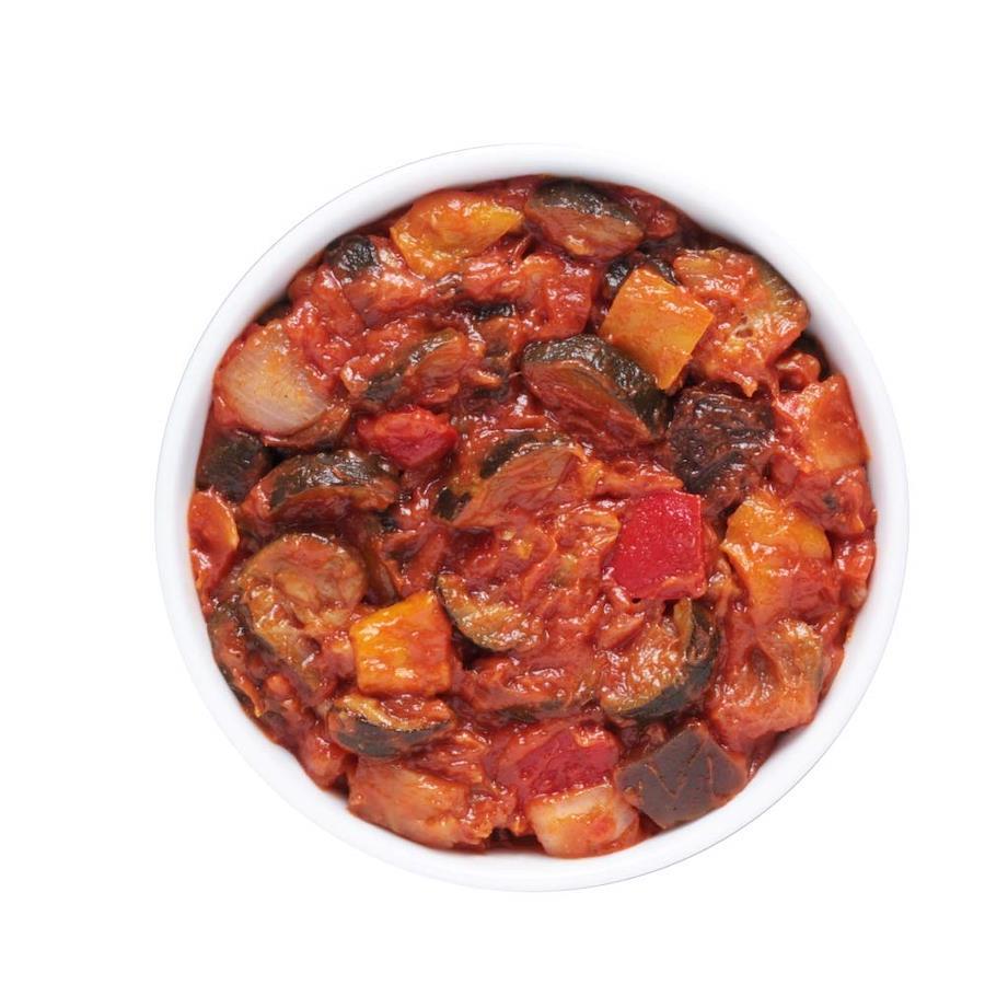 原材料:グリルズッキーニ、トマト・ピューレーづけ、たまねぎ、あらごしトマト、グリル赤ピーマン、グリル黄ピーマン、グリルナス、トマトペースト、大豆油、砂糖、オニオンソテー、チキンブイヨン、ガーリックピューレー、野菜ブイヨン、赤ピーマン濃縮汁、食塩、香辛料/増粘剤(加工デンプン)、乳酸、セルロース、(一部に大豆・乳成分・ゼラチン・鶏肉を含む)