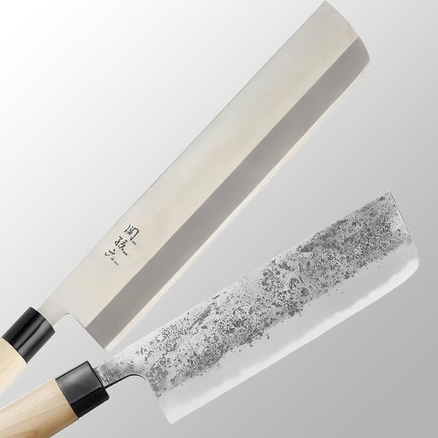 切れ味と研ぎやすさを併せ持つハガネ製ハガネ複合材:ハガネに軟鉄を合わせて叩き上げた、 強靭な刃身。ハガネの特性の切れ味と研ぎやすさを実現。湿式平前刃付け:非常に細かい砥石で繊細な刃付けが可能。 砥石に水をかけながら 行うため摩擦熱による硬度ドロップを回避できます。手になじむ天然木の柄材質 刃体:ハガネ複合材(刃材:炭素鋼 合わせ材:軟鉄) 口金:ナイロン 柄:天然木サイズ:約60×308×22mm 刃渡り:約165mm 重量:約156g原産国:日本サビやすい 「ハガネ製」 です。 使用後は汚れを落とし、水分をよく 拭き取ってください。 汚れや水分を残したまま放置するとサビの原因となります野菜を切るのに向いた包丁です(西型)。サビを防ぐ黒打ちタイプが多く、両刃でできています。