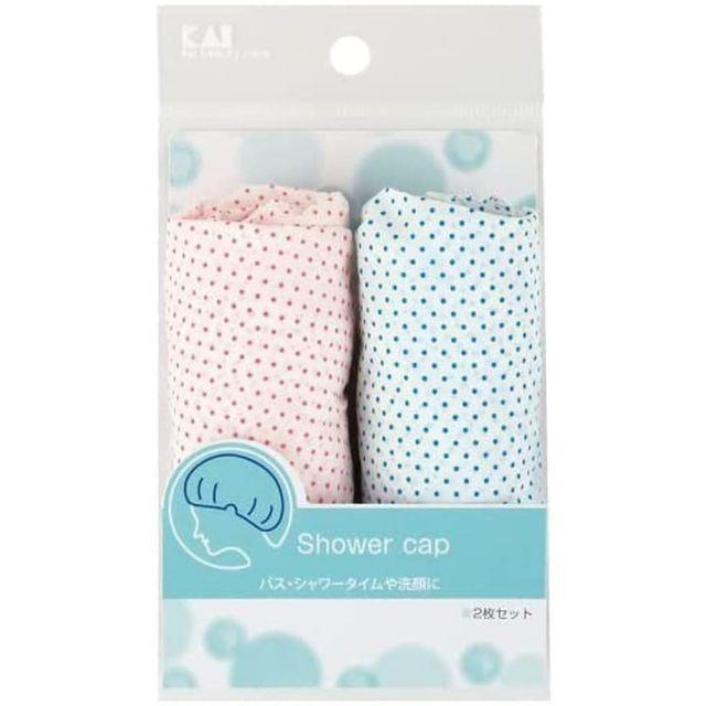 スタイル:ドット柄ピンク&ブルー◆商品名:貝印シャワーキャップ2PHL0181