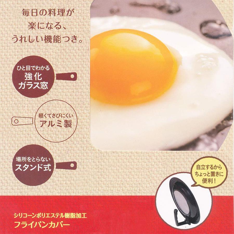 窓が大きく中身が見やすいフライパンカバー軽くて錆びにくいアルミ製臭いや汚れがつきにくいシリコーンポリエステル塗装自立するからちょっと置きに便利