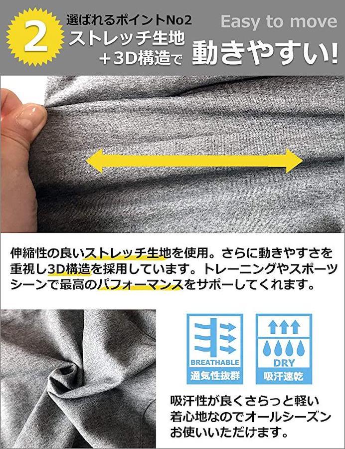 ・「動きやすさ抜群の素材」 伸縮性の良いストレッチ生地を使用。