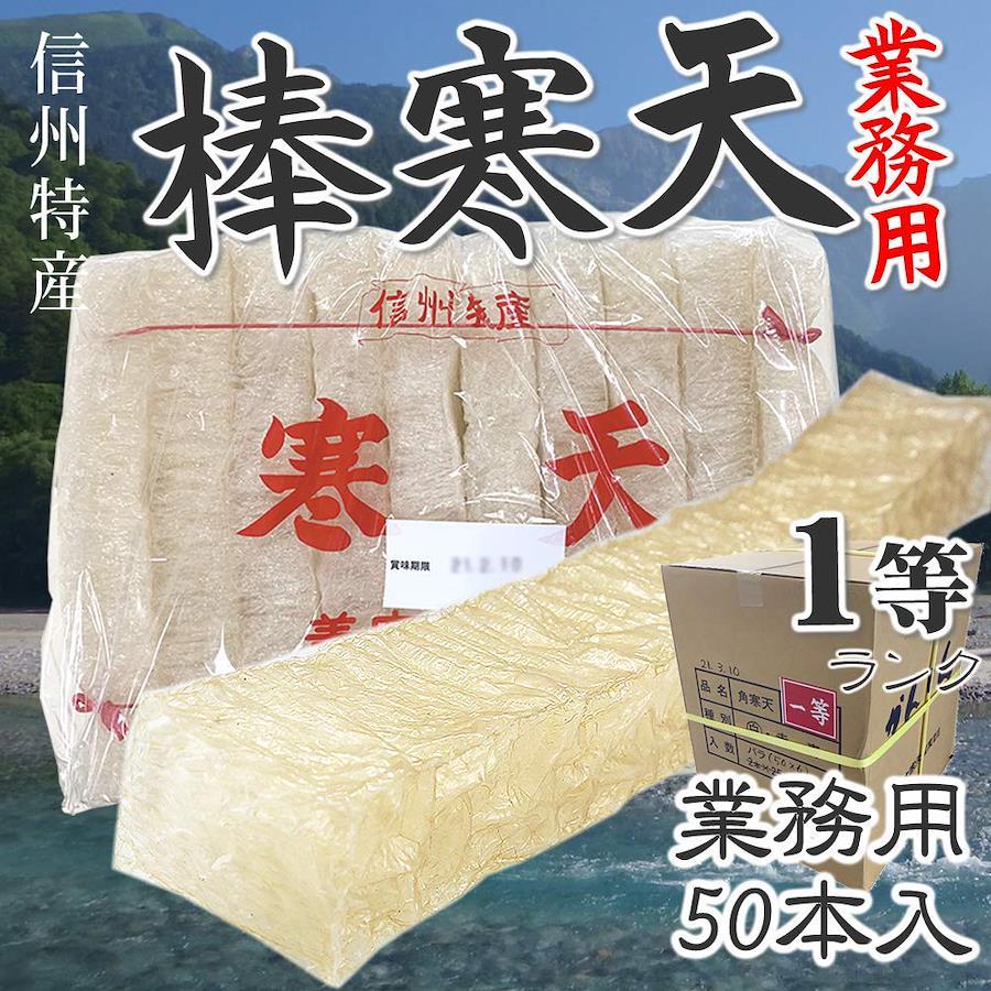 長野県産の良質な、角寒天。業務用サイズの50本入り。(外寸:約27x40x14cm)無添加・無漂白の天然角寒天海藻(テングサ、オゴノリなどの紅藻類の海草)信州の厳しい寒さと澄んだ空気、きれいな水を利用して作られたこだわり棒寒天です。角寒天 1本 大きさ約:3x4x27cm 重さ約:7g