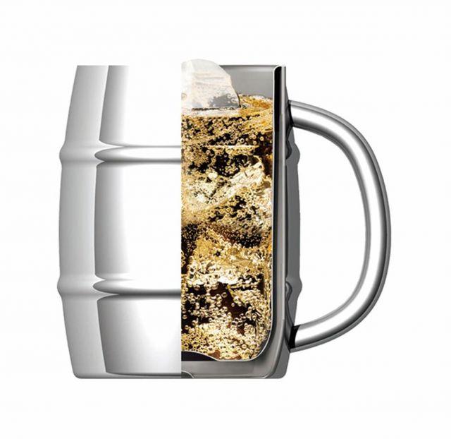 【MAXIMUMMUG1.0L】体感せよ、真の力!真空二重構造ジョッキより保温効果が高い真空二重構造。本体内側と外側の間は、熱が伝わりにくいので、冷たい飲み物も、温かい飲み物も、美味しい温度を長時間キープ!