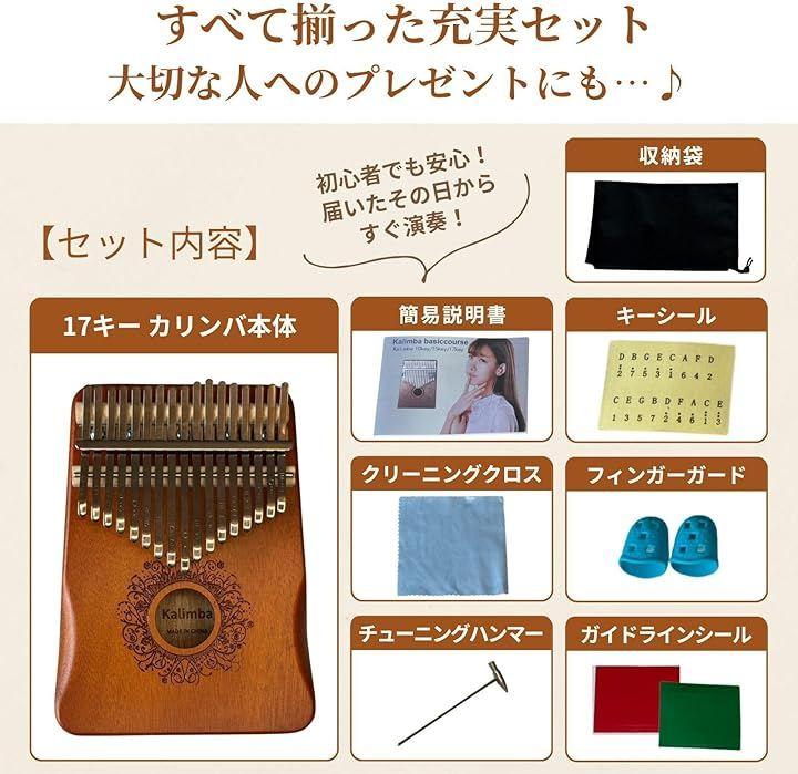 「仕様」 ・音階:17キー/Cメジャー/ワントーン ・素材:紅花梨単板(真材)+スチールキー ・サイズ:約17.5x13x3.1cm ・重量:約242g ・付属品:チューニングハンマー/指キャップ/番号シール/クロス/収納袋/説明書 ・用途:音楽療法・リラックス・教育・趣味・プレゼント