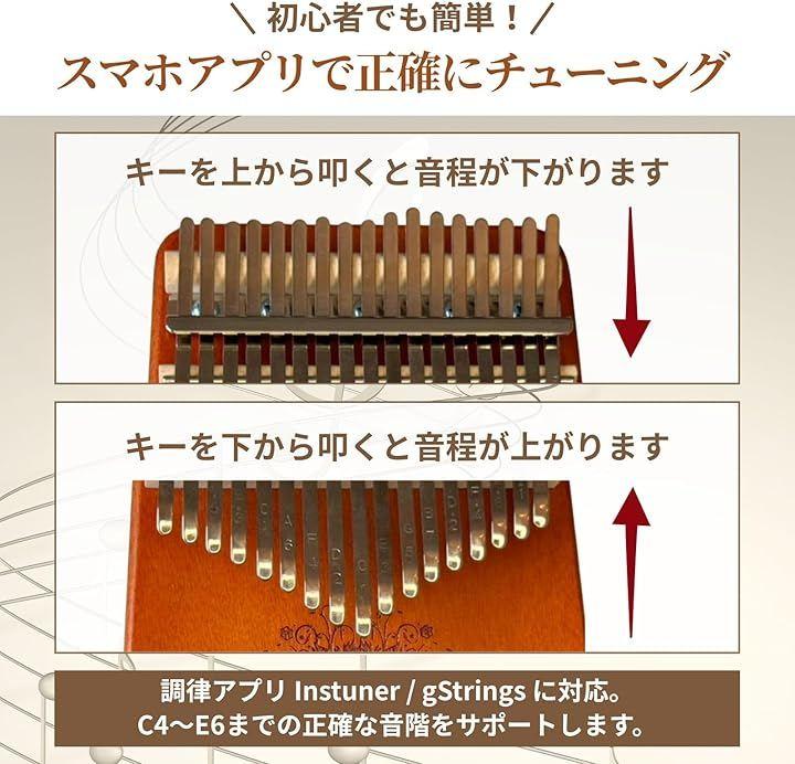 Cメジャー(C調)に調律された17キー・ワントーン仕様で、指で軽く弾くだけで透き通るような音色が広がります。