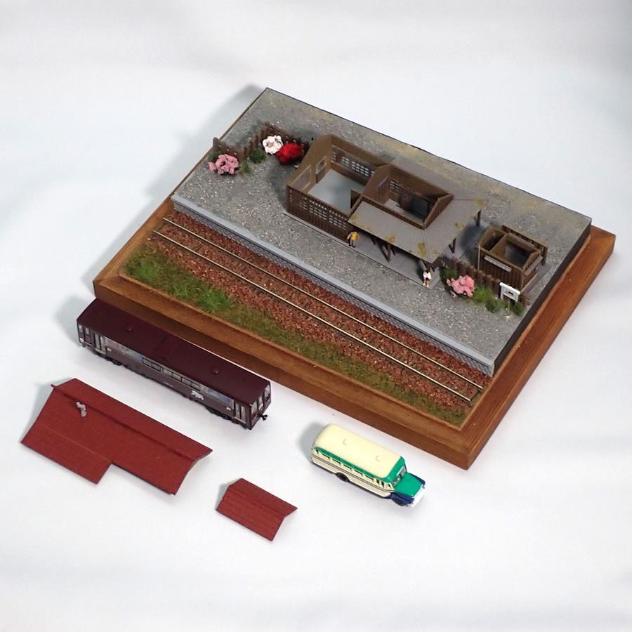 備考:アクリルクリアケース付属、駅舎と便所の屋根は取り外し可能。