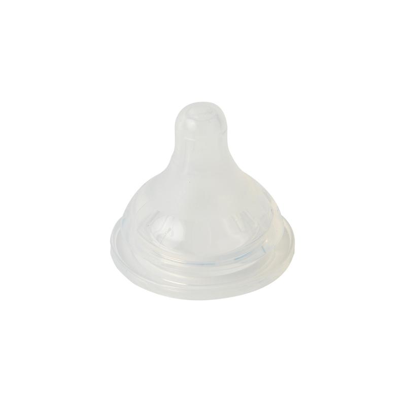 広口用の哺乳瓶に対応している乳首です。乳孔部分がYカットになっていて、赤ちゃんの飲む力に合わせてミルクや母乳が出てきます。新生児期からお使いいただけます。煮沸消毒・電子レンジ消毒・薬液消毒可。