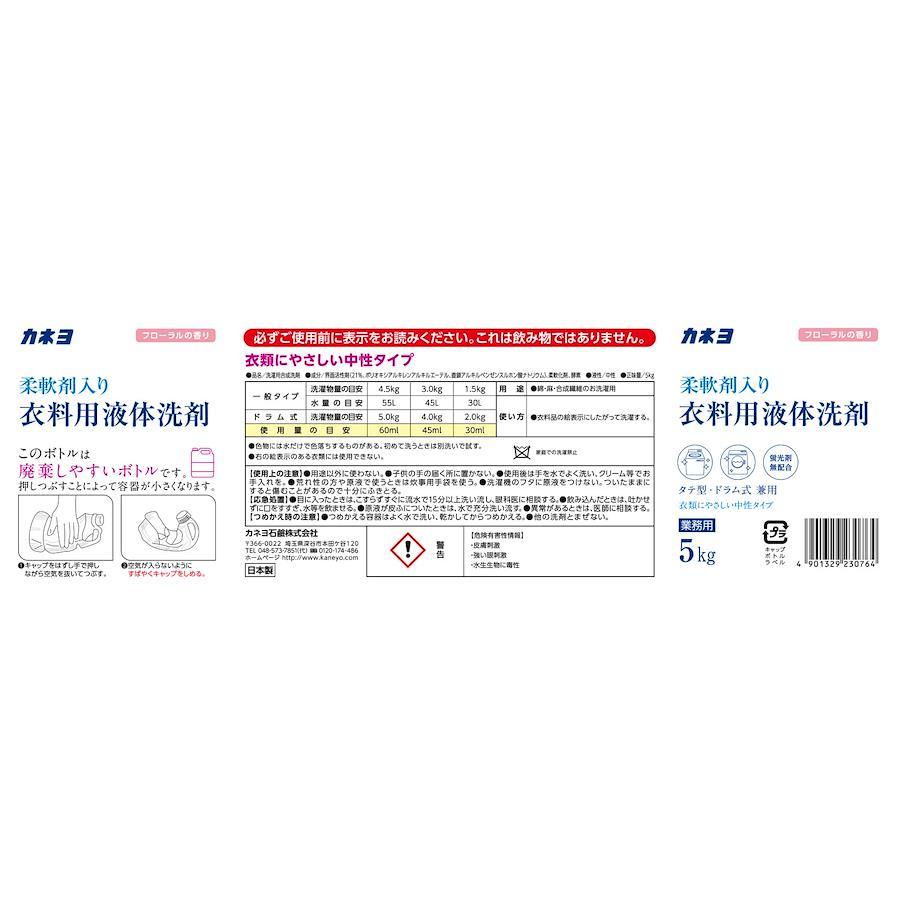 〇商品説明●柔軟剤入りの衣料用液体洗剤です。●衣類にやさしい中性タイプ。●フローラルの香り。●廃棄を考えたつぶせる容器です。●お得用の5kg。