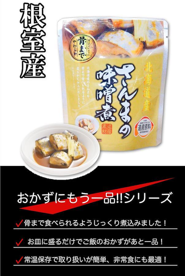 さんま(北海道産)、砂糖、味噌、味醂、(一部に大豆を含む)