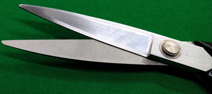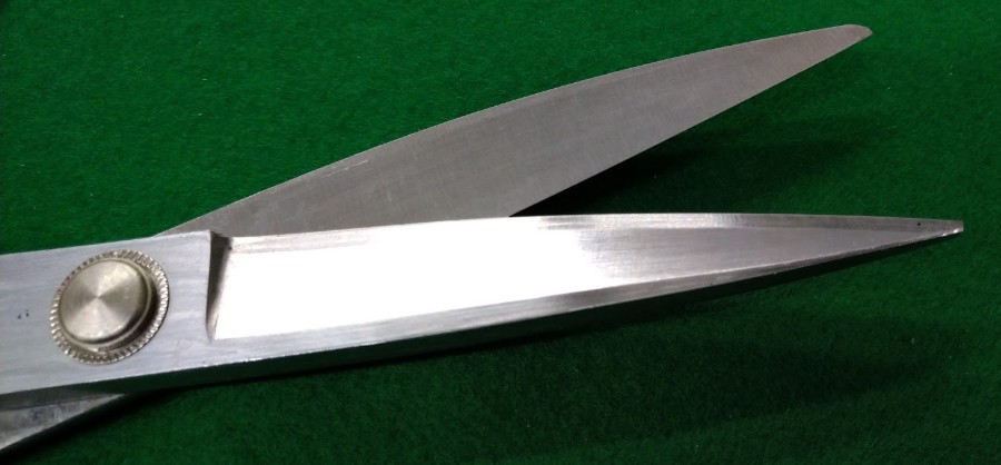 布地(ニット・ラシャ・薄地など)をきれいに裁断する専用鋏刃が長く、片側の刃を作業台に沿わせて布を動かさずに切れる重みを利用して力を入れずにスムーズに裁断できる