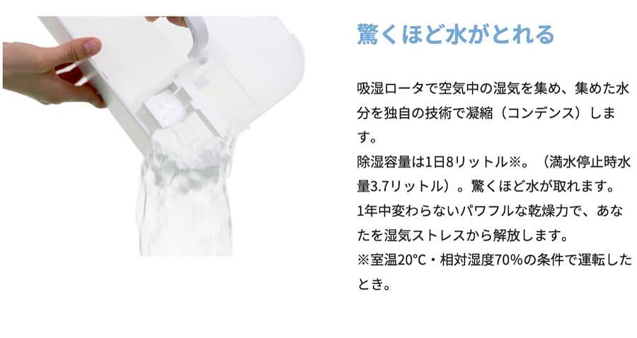 カラー:プレミアムホワイト除湿方式:コンデンス式定格電源:AC100V 50/60Hz (西日本・東日本両対応)消費電力:214W