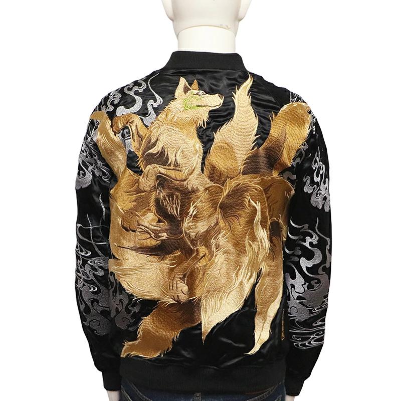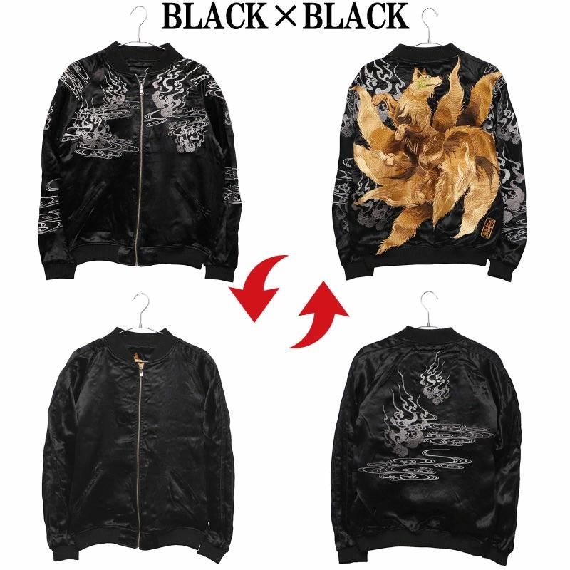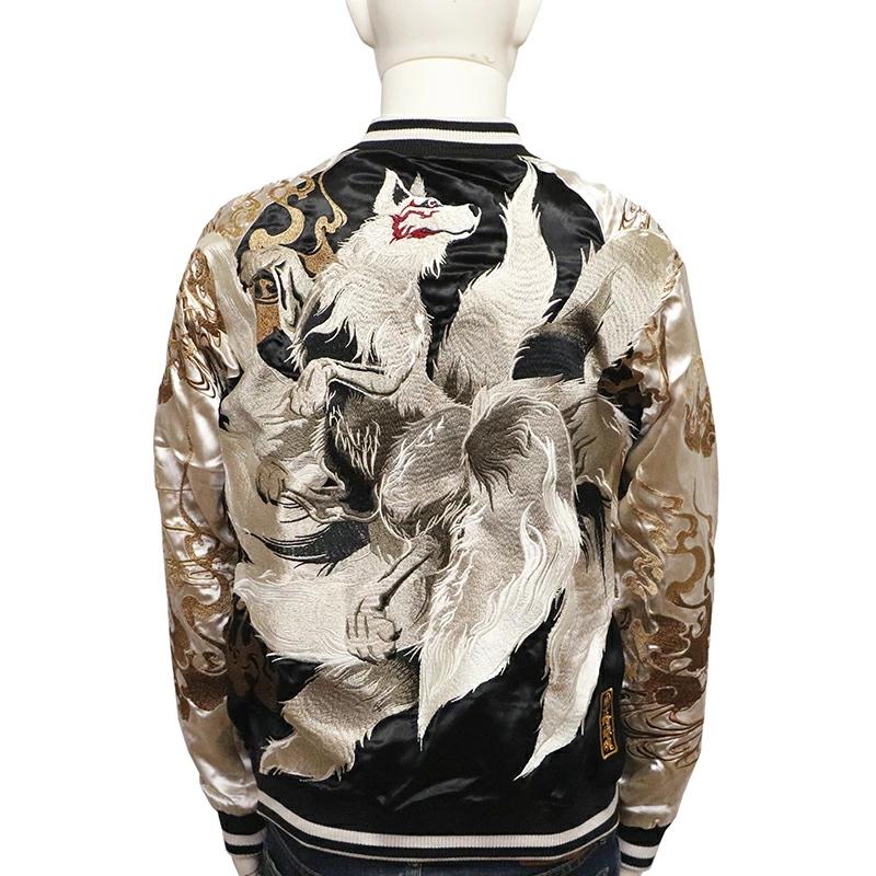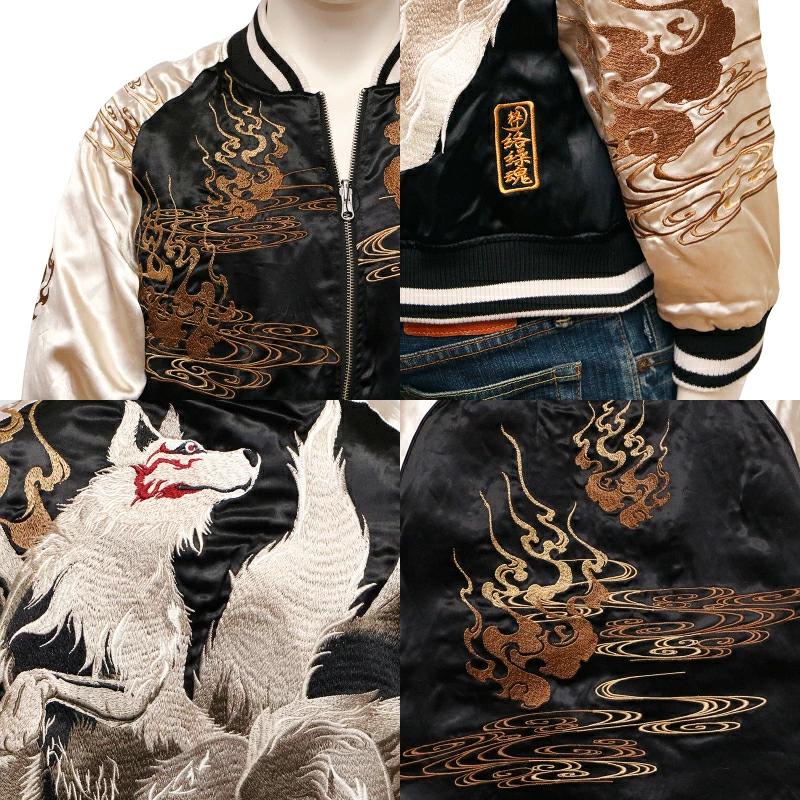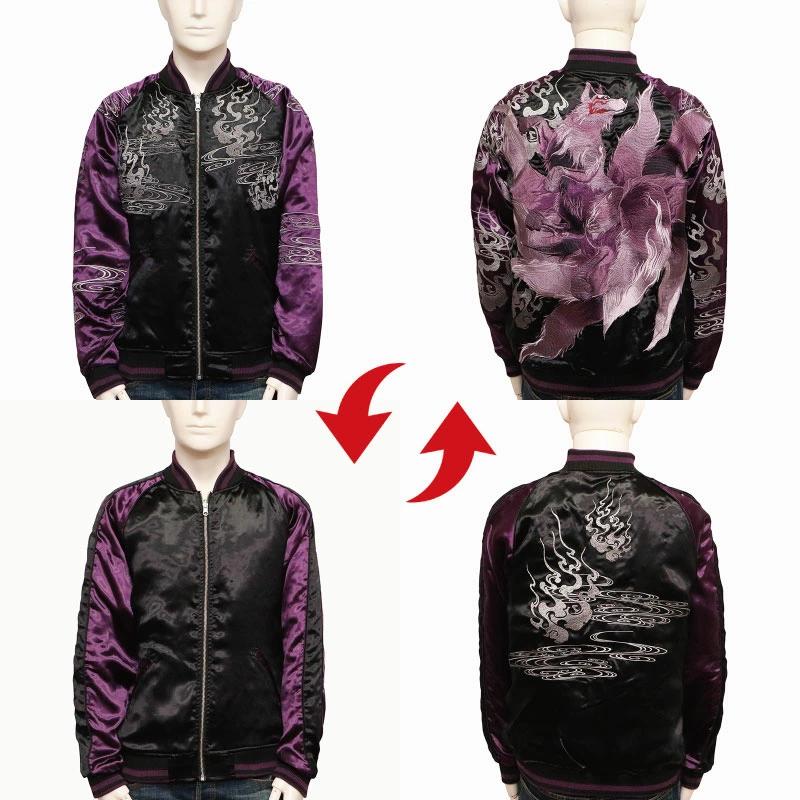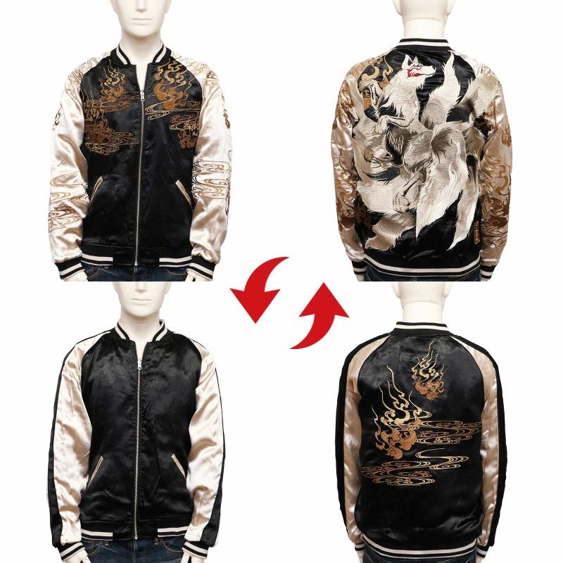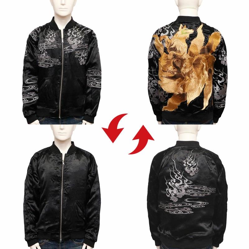 火炎 九尾の狐 柄 刺繍 和柄 リバ−シブル スカジャン