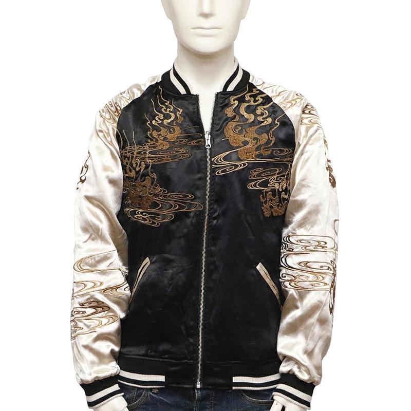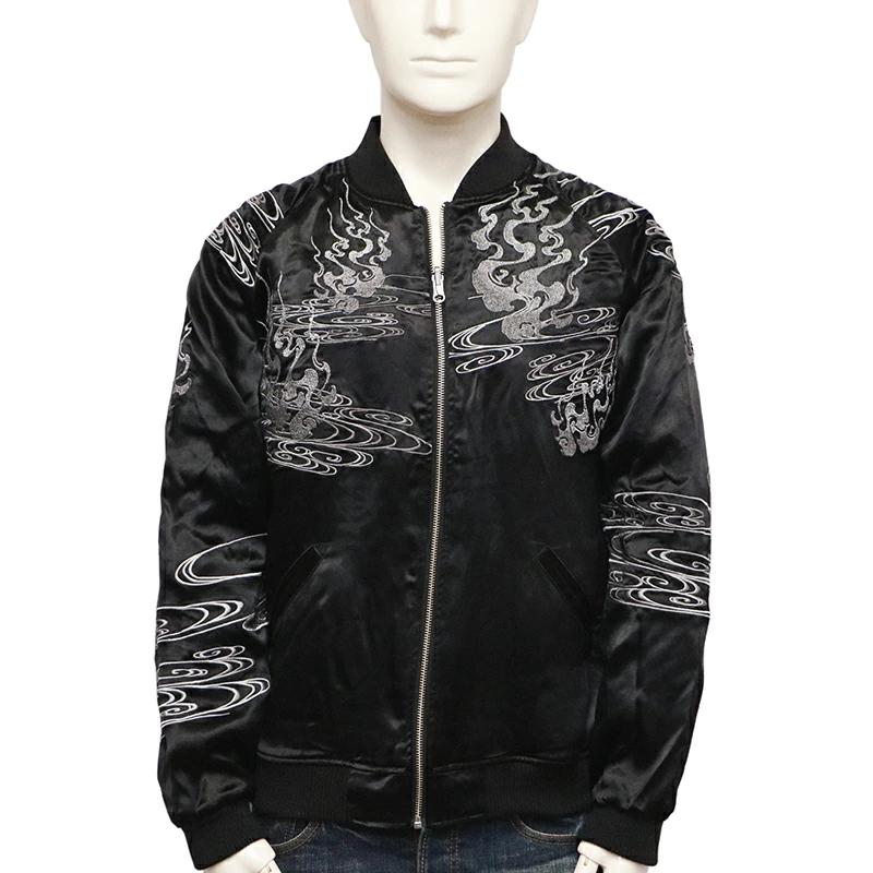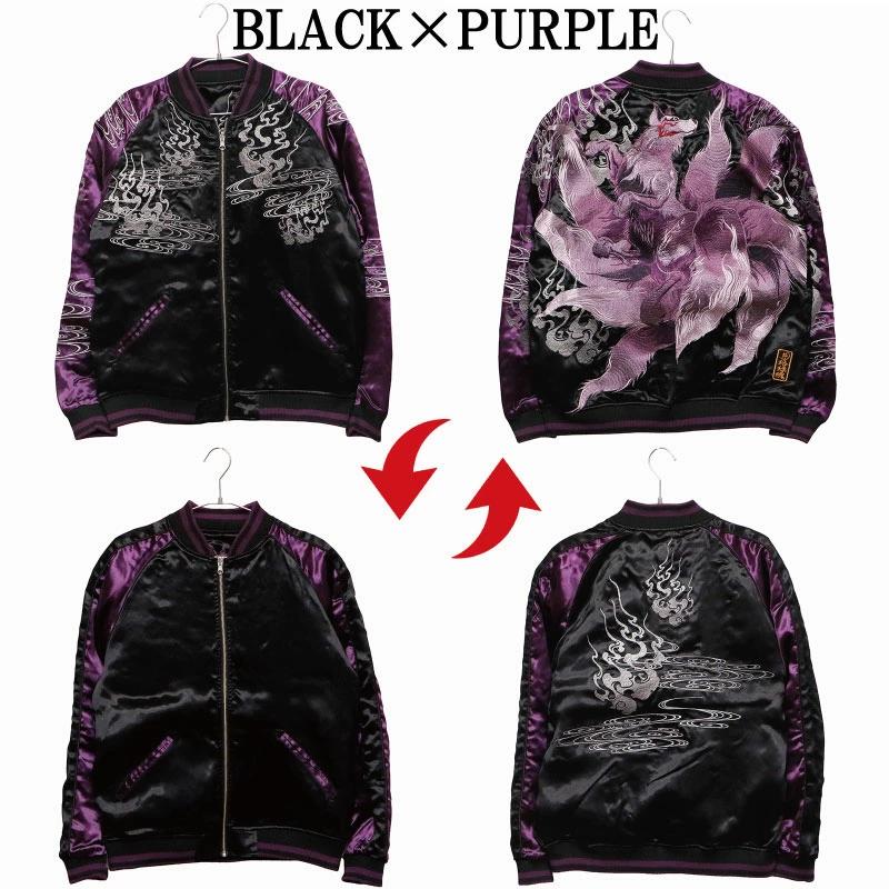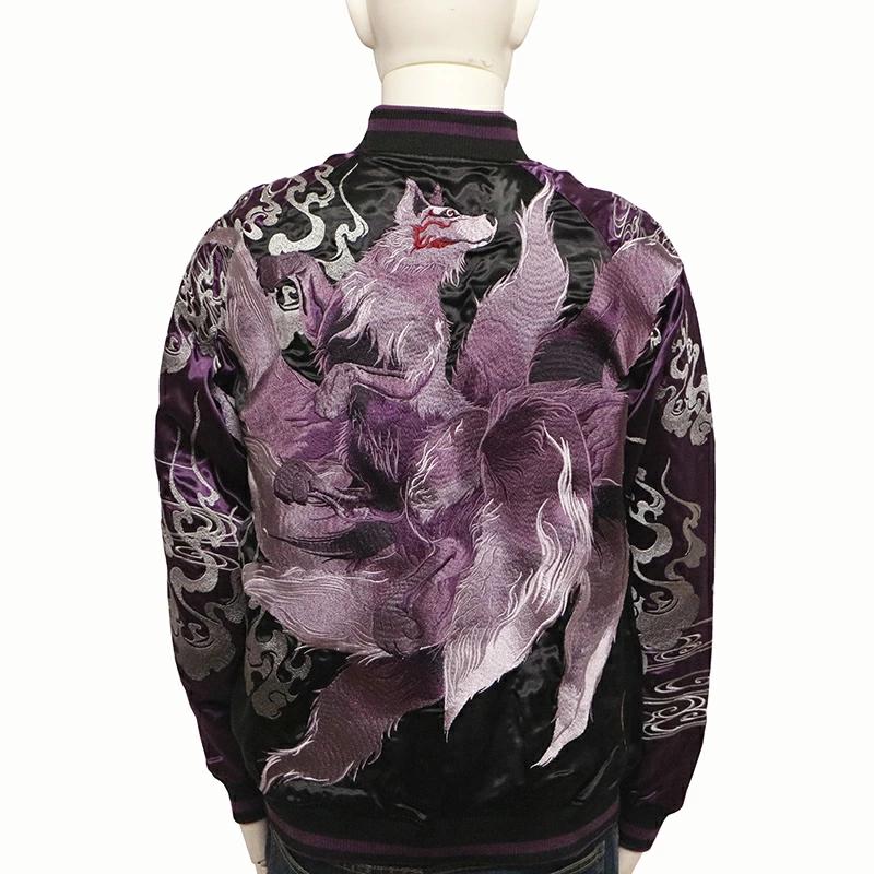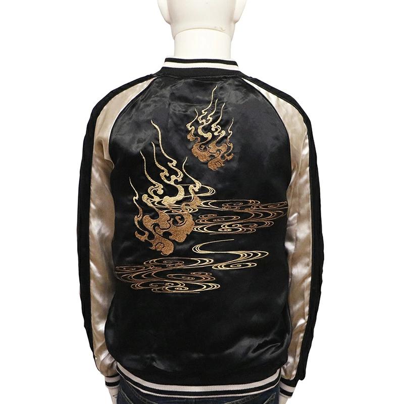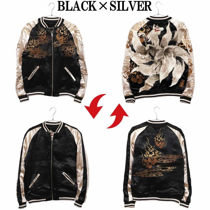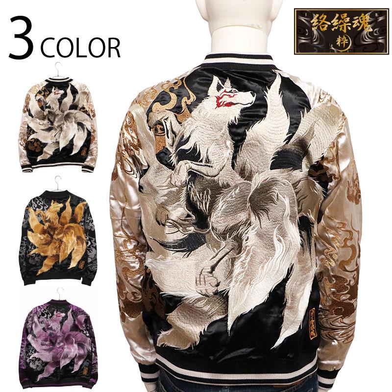 火炎 九尾の狐 柄 刺繍 和柄 リバ−シブル スカジャン