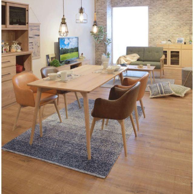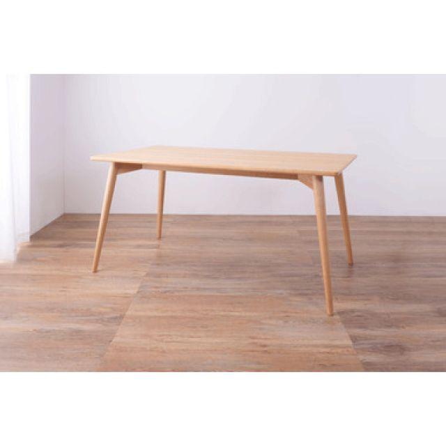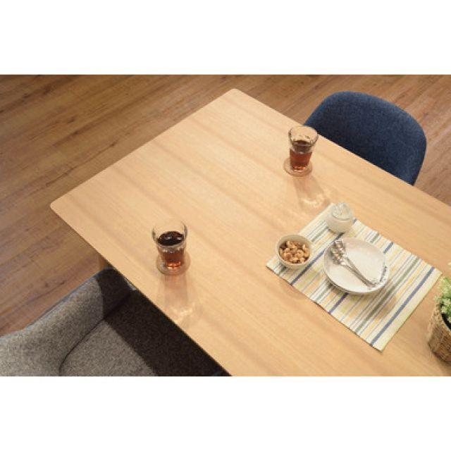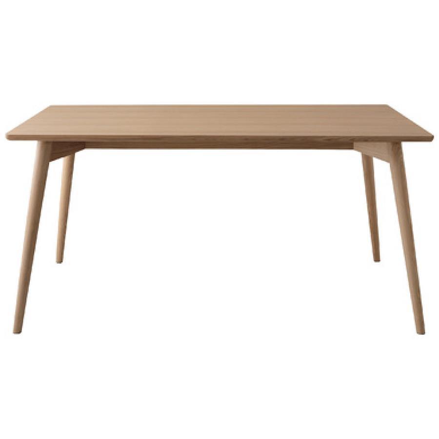 カラメリダイニングテーブル2カラー■デザイン&使いやすさ/【カラメリ】シリーズからついに登場のダイニングテーブル。幕板が内側に有ることで、立ち座りしやすい仕様になっています。見た目の美しさだけではなく、使いやすさも兼ね備えたデザインです。■定番の天然木アッシュ/天板は天然木化粧繊維板(アッシュ)を使用しています。美しく落ち着いた雰囲気の木目なので、飽きの来ない長くお使いいただけるダイニングテーブルです。■丸みのある角/テーブルのフチの部分は天然木(アッシュ)を使用し、丸みのある柔らかい曲線で仕上げました。チェア全体の“心地よい曲線”との相性も抜群。小さいお子様がいるファミリー層の方にも安心してお使いいただけるデザインです。■北欧ナチュラルデザイン/脚部は角を落とし、ハの字に設計することで、北欧ナチュラルデザインを表現した優しい印象に仕上げました。ナチュラルブラウン〈製品規格〉【商品サイズ】