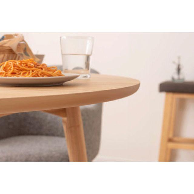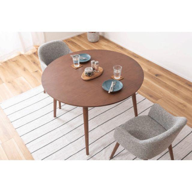 ●シンプルなのに、どこかやさしさを感じさせるカラメリシリーズ。●円形のダイニングテーブルは、リラックスしながら談話をしたり食事をしたりするのに適したデザインなので、お家のダイニングルームや会社の休憩室・リフレッシュルーム等で重宝するデザインです。●落ちついた色・丸みのあるデザインを取り入れ、永く親しみやすいように仕上げました。●脚部は角を落とし、ハの字に設計することで、優しい印象に。●脚裏にはフェルトが付いているので、床への傷防止になり安心です。