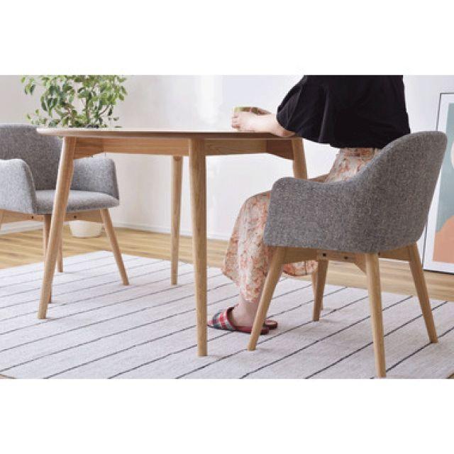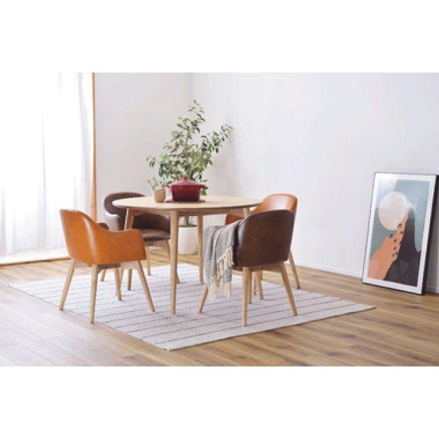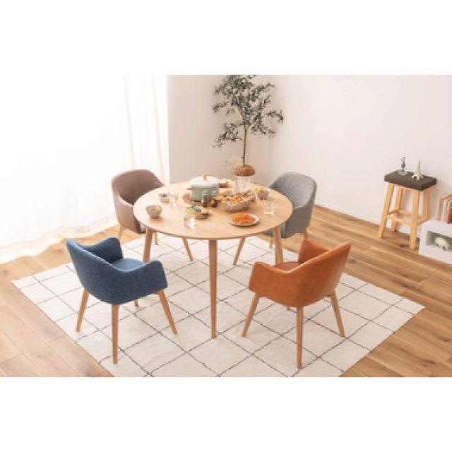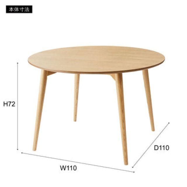 ●シンプルなのに、どこかやさしさを感じさせるカラメリシリーズ。●円形のダイニングテーブルは、リラックスしながら談話をしたり食事をしたりするのに適したデザインなので、お家のダイニングルームや会社の休憩室・リフレッシュルーム等で重宝するデザインです。●落ちついた色・丸みのあるデザインを取り入れ、永く親しみやすいように仕上げました。●脚部は角を落とし、ハの字に設計することで、優しい印象に。●脚裏にはフェルトが付いているので、床への傷防止になり安心です。