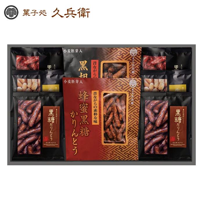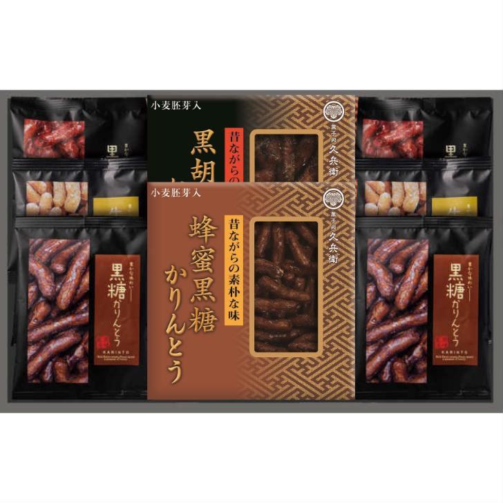 久兵衛黒胡麻かりんとう45g、久兵衛蜂蜜黒糖かりんとう45g、黒糖かりんとう15g×2、黒胡麻かりんとう15g×2、牛乳かりんとう15g×2、