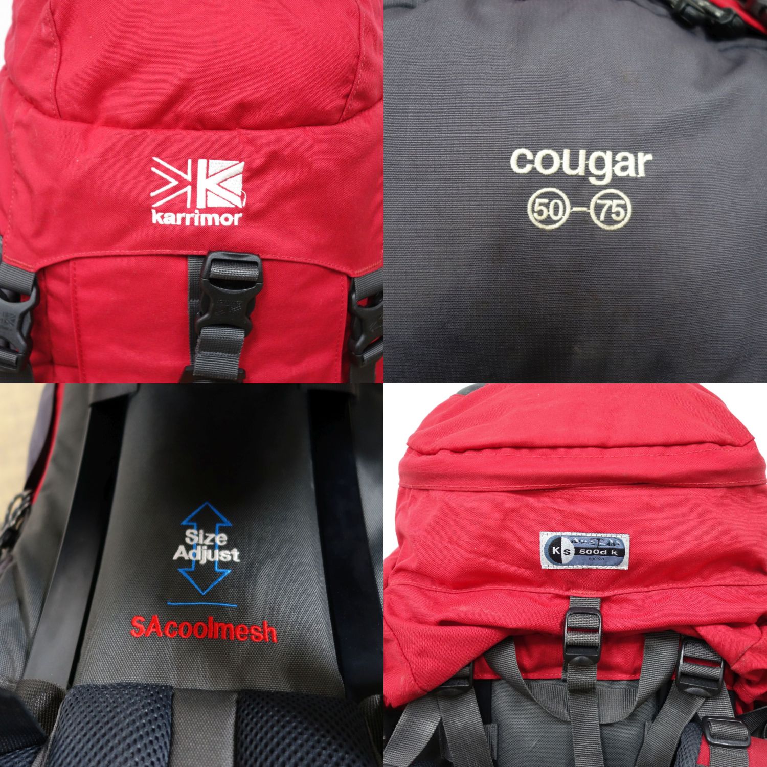 ■商品名カリマー karrimor COUGAR 50-75 クーガー 50L~75L 大型 バックパック リュック ザック 登山 アウトドア 縦走 テン泊 小屋泊 レッド サイズ-■状態説明・karrimor大型バックパック「COUGAR 50-75」です♪・容量 50L~75L・背面長 調整可能・ベルトクリップが欠損している箇所がございます。(問題無くご使用頂ける状態です)・レインカバーは付属いたしません。・内部生地が多少劣化しておりますが、ベタつきやニオイは無くまだまだお使い頂ける状態です。・使用感やキズ、多少の色褪せや使用による汚れがございますがご使用に差し支えるダメージは無くまだまだお使い頂ける状態です♪【付属品:なし】■素材-■カラーレッド■表記サイズ-■実寸サイズ■状態ランクB 傷や汚れがあるが、まだまだ使用可能な状態■店舗管理番号ce11ot-rk26y10502_red