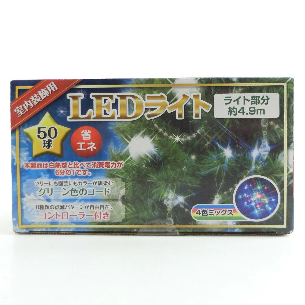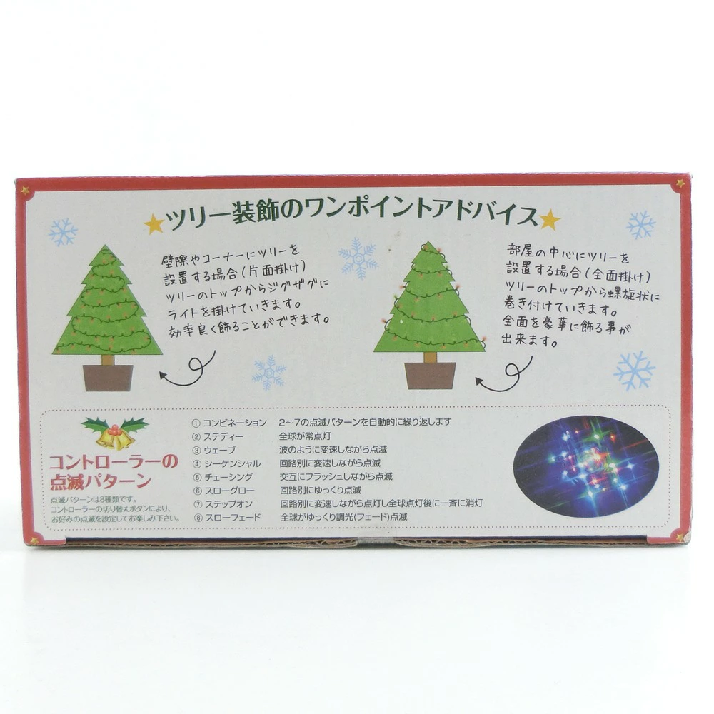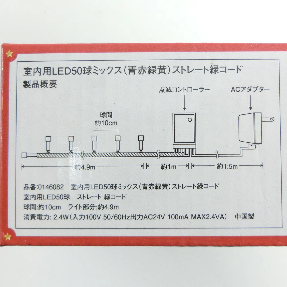 | 商品説明 | クリスマスツリーに飾る電球です。 【仕様】 ・サイズ:全長 約7.4m、ライト部分 約4.9m、球間 約10cm ・消費電力:2.4W ・電球カラー:青・赤・緑・黄色(4色ミックス) |