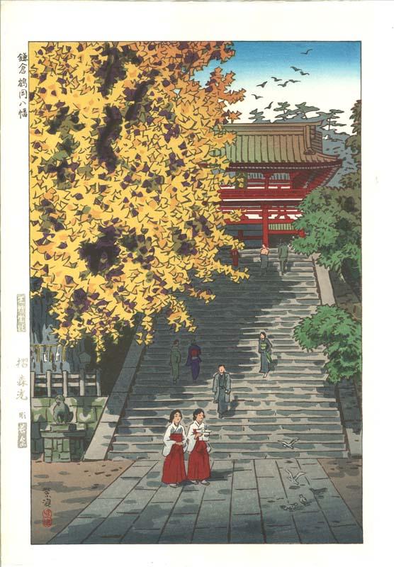 Shiro Kasamatsu, 1898-1992 Shinhanga artistShiro Kasamatsu was a student of Kaburagi Kiyokata.In the 1950s he published bird and animal prints, landscapesand "famous views" with the publisher Unsodo - alltogethermore than 100.The print is reprinted.Shiro Kasamatsu worked in Shin Hanga and Sosaku Hanga style.